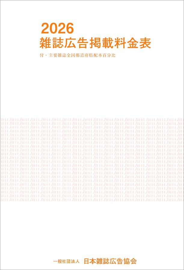 協会会員社が発行している雑誌について、ジャンル別にまとめた広告掲載料金と主要雑誌全国都道府県別配本百分比を掲載しています。(B6判)